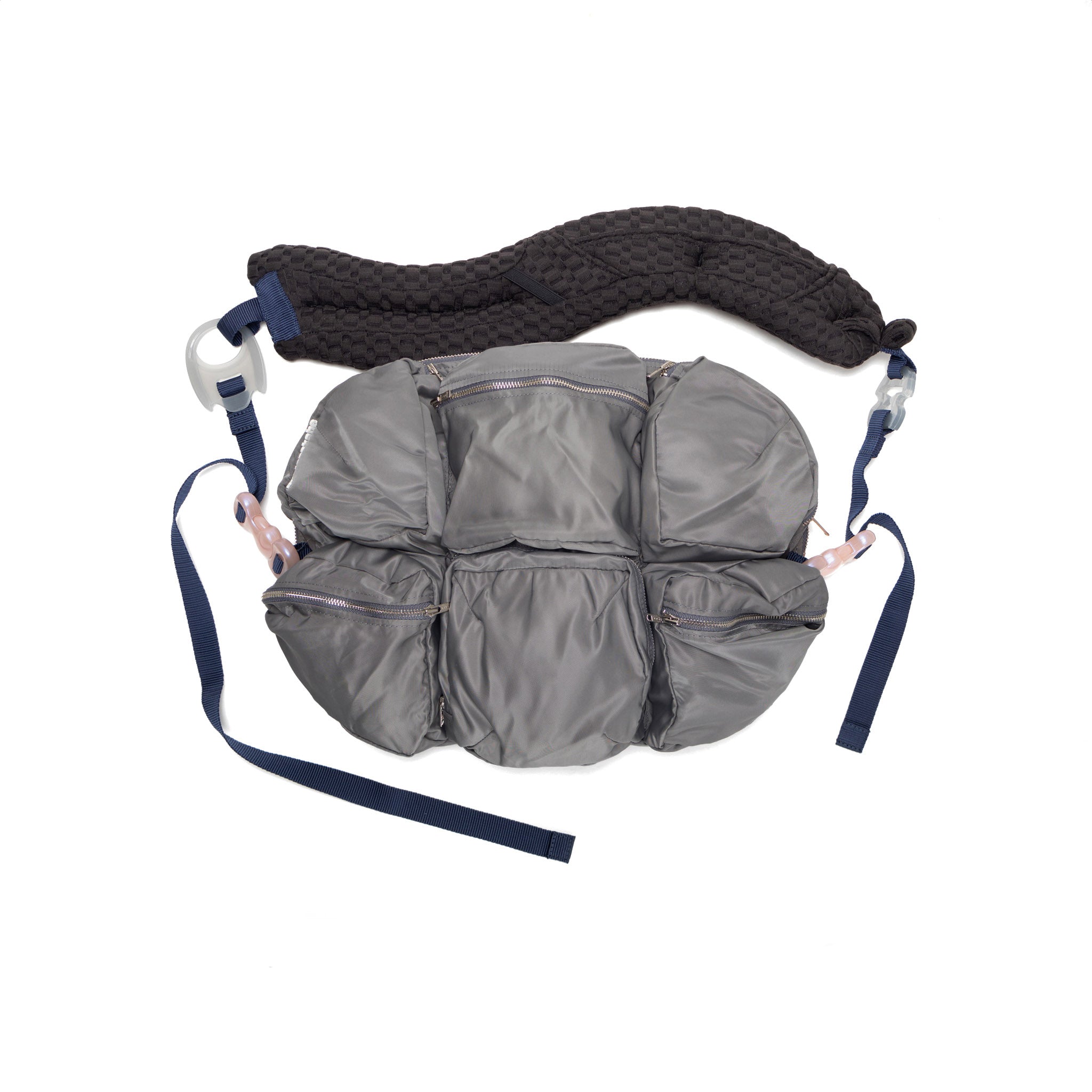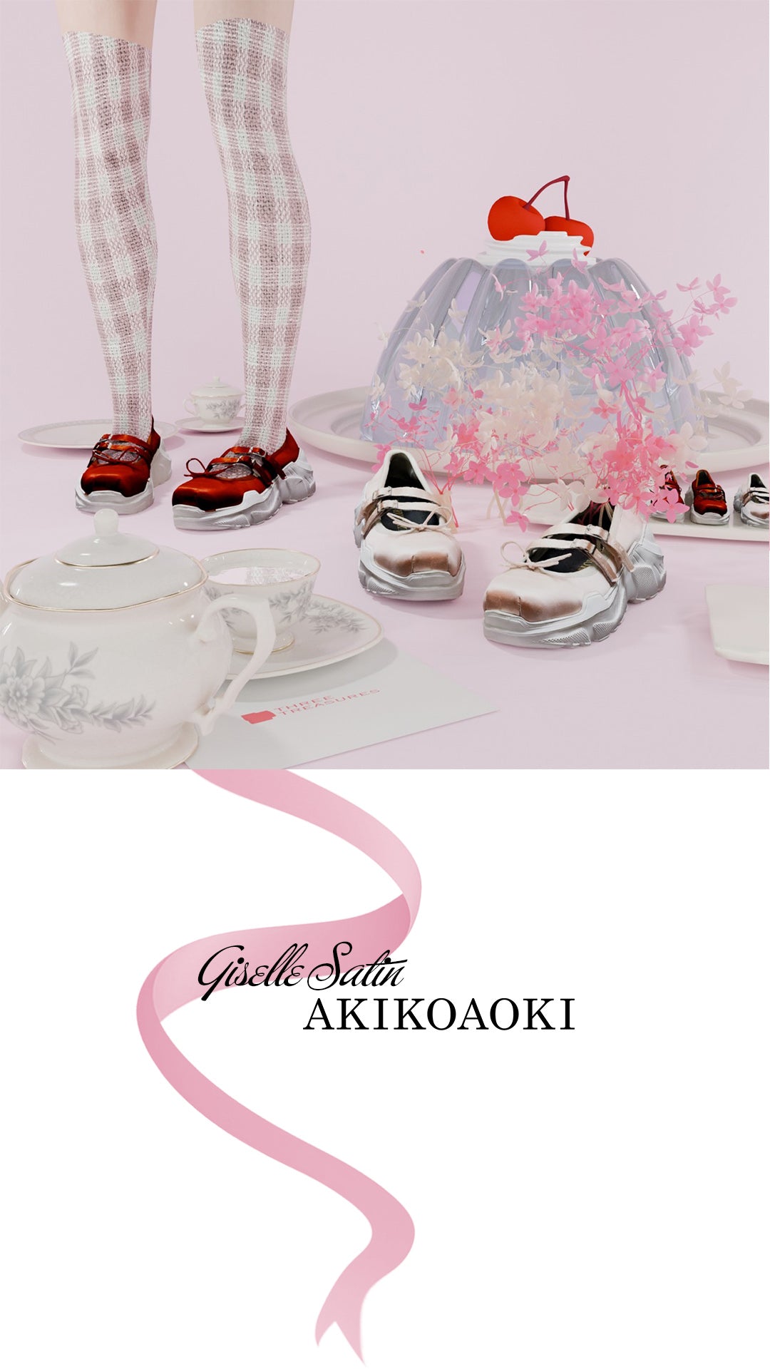 Jenny Fax × three treasures コラボレーションによるサテン素材のミニバッグ。